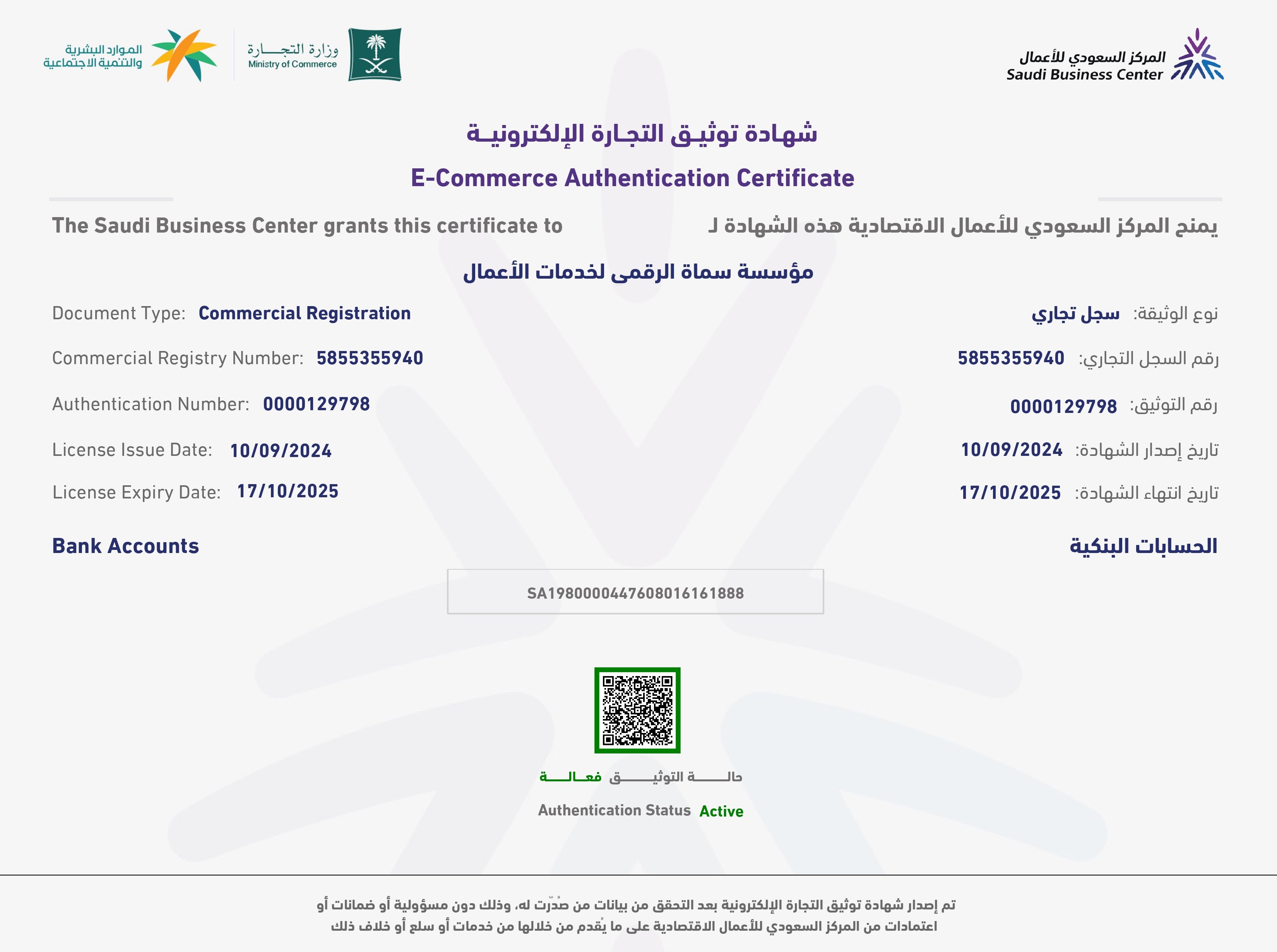 سعدنا بخدمتك وتقييمك ونتشرف بك دائماً في سُماة الرقمي لخدمات الأعمال ونتمنى لك كل التوفيق